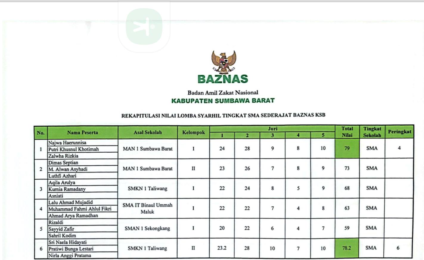 SMAN 1 JEREWEH JUARA LOMBA SYARHIL QURAN